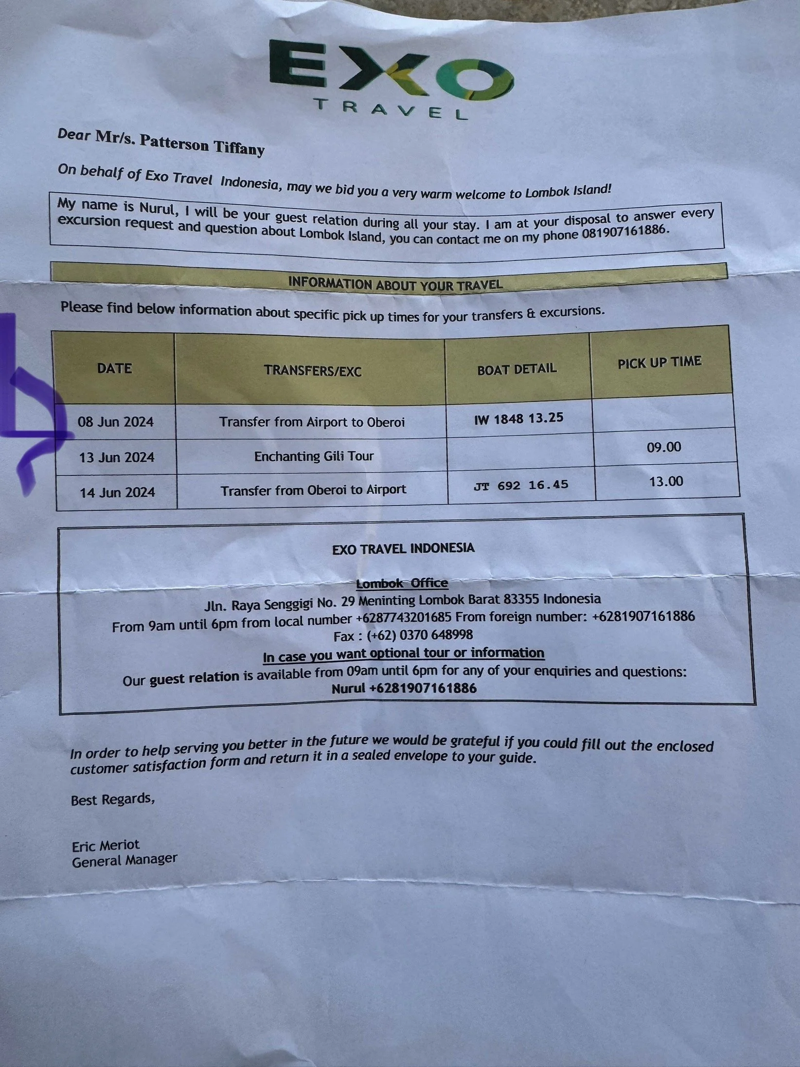 The itinerary or as they call it here, program information I received upon arrival in Lombok. NOTE: nothing is happening on 9 June. Hmmmmm……